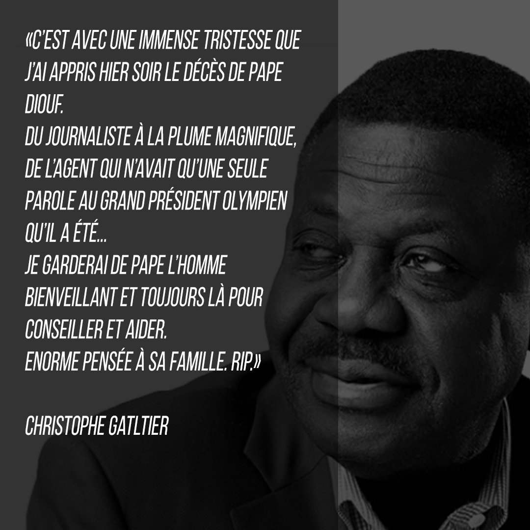 « C’est avec une immense tristesse que j’ai appris hier soir le décès de Pape Diouf. Du journaliste à la plume magnifique, de l’agent qui n’avait qu’une seule parole au grand président olympien qu’il a été… Je garderai de Pape l’homme bienveillant et toujours là pour conseiller et aider. Énorme pensée à sa famille. RIP », a lancé le coach via les réseaux sociaux de son agence Score Agencies.