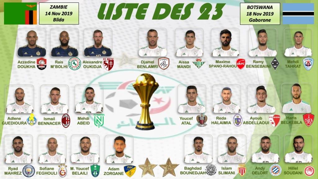 Tenante du titre de la Coupe d’Afrique des Nations, l’Algérie repart en campagne. Elle débute ses qualifications en Zambie le 14 novembre prochain, avant de se déplacer au Botswana 4 jours plus tard. Djamel Belmadi vient de dévoiler sa liste de 23 joueurs.