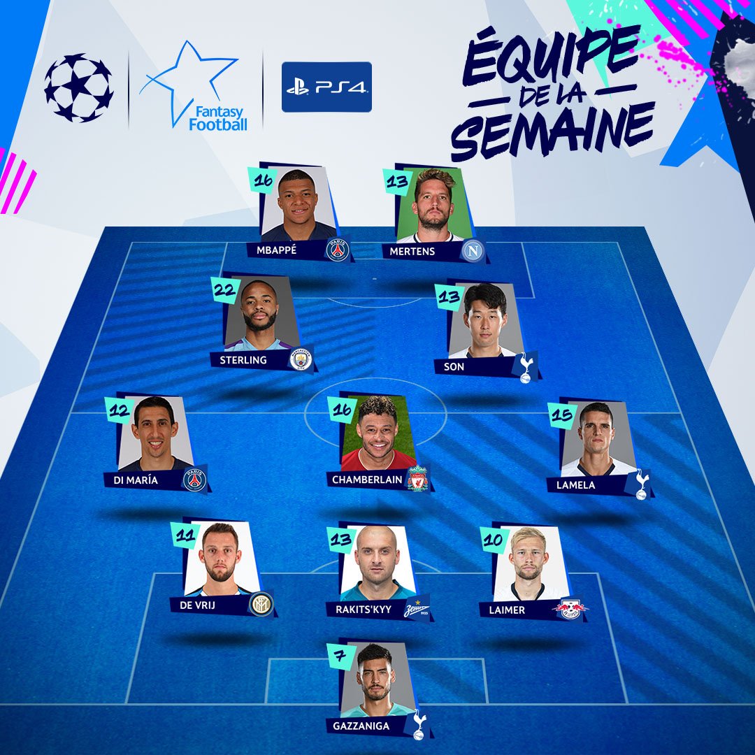 C’est donc fort logiquement qu’on retrouve ainsi trois joueurs des Spurs et deux du Paris Saint-Germain dans le onze concocté par l’UEFA. Ainsi, Gazzaniga, Son et Lamela figurent dans cette équipe type tout comme Angel Di Maria et Kylian Mbappé. Auteur d’un triplé face à l’Atalanta Bergame avec Manchester City, Raheem Sterling apparaît également dans ce onze.