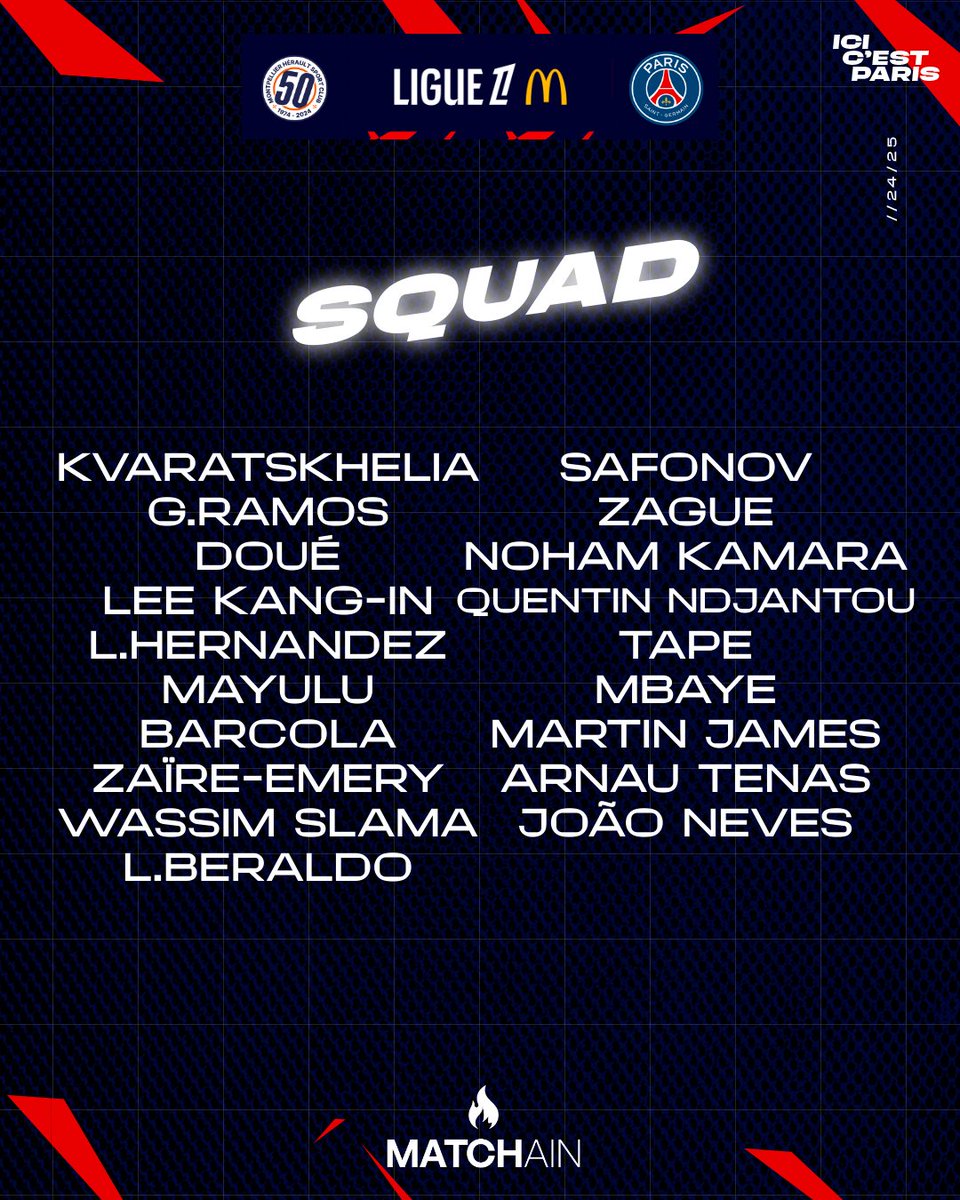 Enfin, d’autres nouveaux visages pourraient profiter du déplacement dans l’Hérault pour s’illustrer. C’est notamment le cas de Martin James. Gardien de 17 ans, le natif de Versailles, passé par Meudon, était bien présent l’entrainement collectif de Luis Enrique ce vendredi. Si une titularisation face aux Montpelliérains semble peu probable malgré l’absence de Gianluigi Donnarumma (Matvey Safonov et Arnau Tenas figurent dans le groupe), cette première convocation laisse toutefois de jolis espoirs au principal concerné. Il en va de même pour Wassim Slama. Issu de la préformation du PSG, ce jeune attaquant polyvalent de 16 ans, habituellement avec les U17 (quatre matches avec les U19 cette saison), a, lui aussi, été convoqué par le technicien parisien. Au même titre que Quentin Ndjantou Mbitcha. Milieu offensif créateur, capable d’évoluer dans des positions plus avancées, le Titi de 17 ans, passé par le Paris FC et Villejuif, fait lui aussi partie des grands talents de la formation du PSG. Un temps retardé par les blessures, le gamin d’Arpajon s’est d’ailleurs vu proposer un premier contrat professionnel par le club de la capitale, qui devra toutefois se méfier de l’intérêt exprimé par Hoffenheim, actuel 14e de Bundesliga.