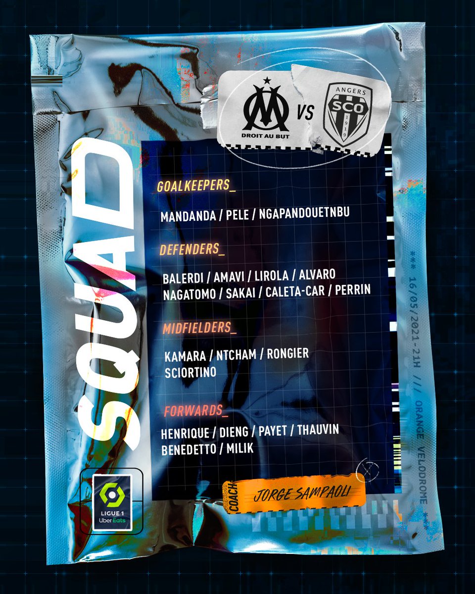 Après avoir mis au placard certains éléments cette semaine comme Cuisance, Germain, Khaoui et Rocchia, Jorge Sampaoli a convoqué un groupe de 21 joueurs pour évoluer contre Angers ce dimanche (à suivre en live commenté sur notre site) avec objectif assumé de viser la 5e place de Ligue 1.