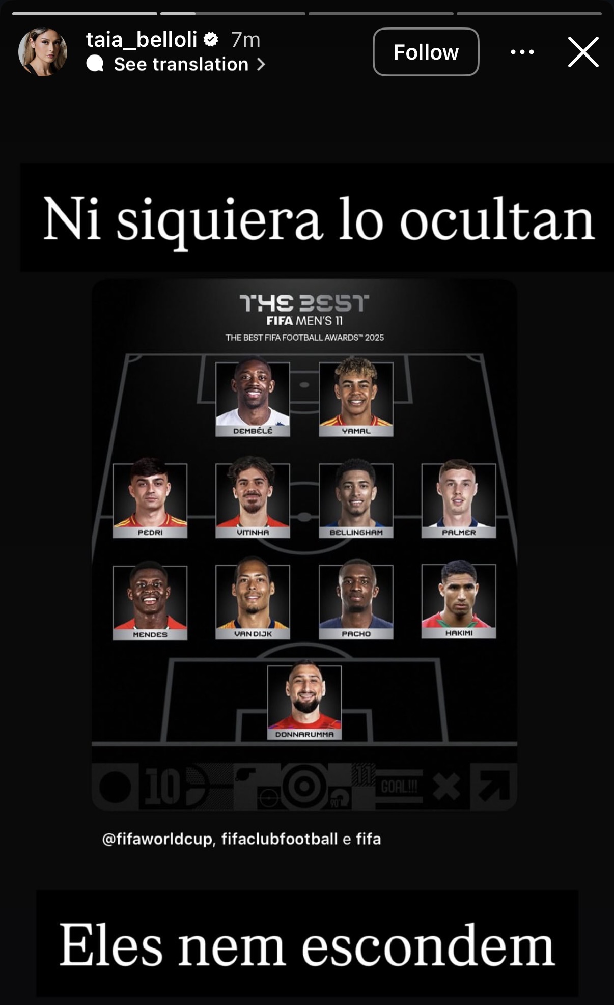 🚨📲 𝗡𝗘𝗪: Raphinha’s wife posted FOUR Instagram stories as Raphinha wasn’t included in FIFA’s FIFPRO World XI: