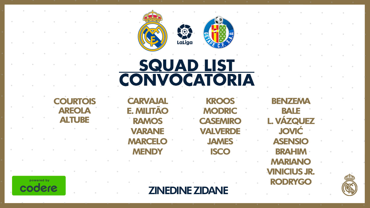 Les Merengues ont dévoilé ce mercredi le groupe convoqué par Zinedine Zidane pour ce match de la 33e journée du championnat espagnol. Eden Hazard (29 ans) ne fait pas partie des 24 noms retenus par le technicien français, qui pourra en revanche compter sur Lucas Vazquez (29 ans) et Luka Jovic (22 ans), de retour pour la première fois depuis la reprise de la Liga.
