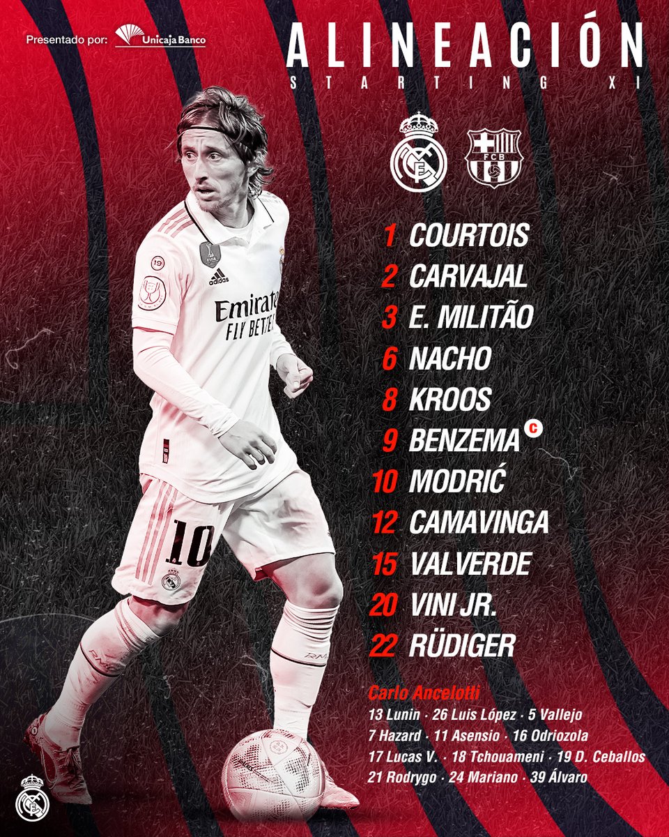 En difficulté face au collectif madrilène, la bande de Xavi, cynique, virait en tête à la pause. Au retour des vestiaires, la physionomie de la rencontre ne changeait guère. Sous pression, le Barça subissait face à la vivacité de Vinicius (49e, 57e) mais ne craquait pas. Une nouvelle fois mis en danger sur une passe en retrait un peu appuyée de Balde pour Alonso (54e), le club catalan ne parvenait pas à se montrer menaçant aux abords de la surface madrilène. La demi-heure de jeu passée, Carlo Ancelotti apportait du sang neuf et décidait de lancer Rodrygo en lieu et place de Nacho.