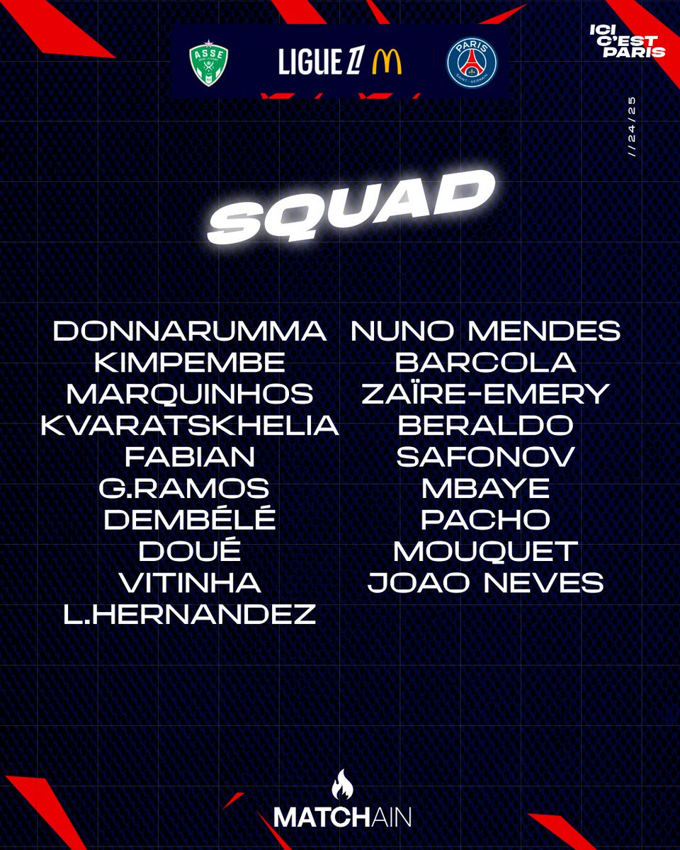 En revanche et comme le PSG l’a indiqué hier, Achraf Hakimi est laissé au repos pour cette rencontre, lui qui était convoqué avec le Maroc ces derniers jours. Le jeune Senny Mayulu est lui absent pour accumulations de cartons jaunes.