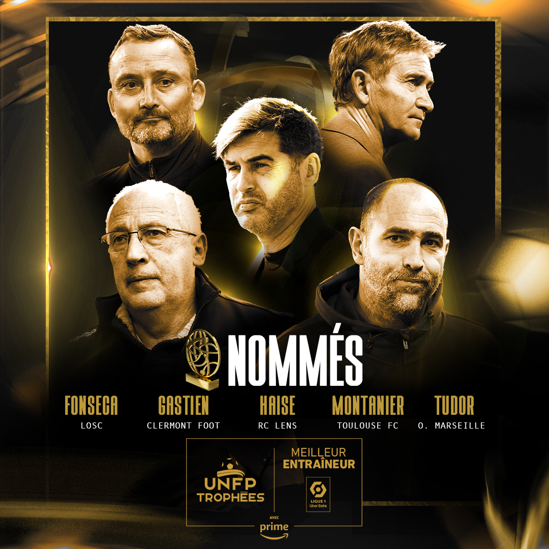 Igor Tudor (OM), Philippe Montanier (TFC), Franck Haise (RC Lens), Paulo Fonseca (LOSC) et Pascal Gastien (Clermont) sont les nominés pour le trophée de coach de l’année en Ligue 1. Pas de Christophe Galtier donc !