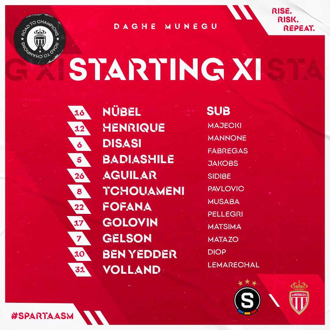 L’ASM ne change pas une formule qui gagne, avec un 4-4-2 à plat. Alexander Nübel démarre comme dernier rempart. Il est devancé par Ruben Aguilar, Benoît Badiashile, Axel Disasi et Caio Henrique. La doublette Aurélien Tchouaméni/Youssouf Fofana est reformée, tandis que Gelson Martins et Aleksandr Golovin occupent les ailes. Devant, Wissam Ben Yedder est associé à Kevin Volland.