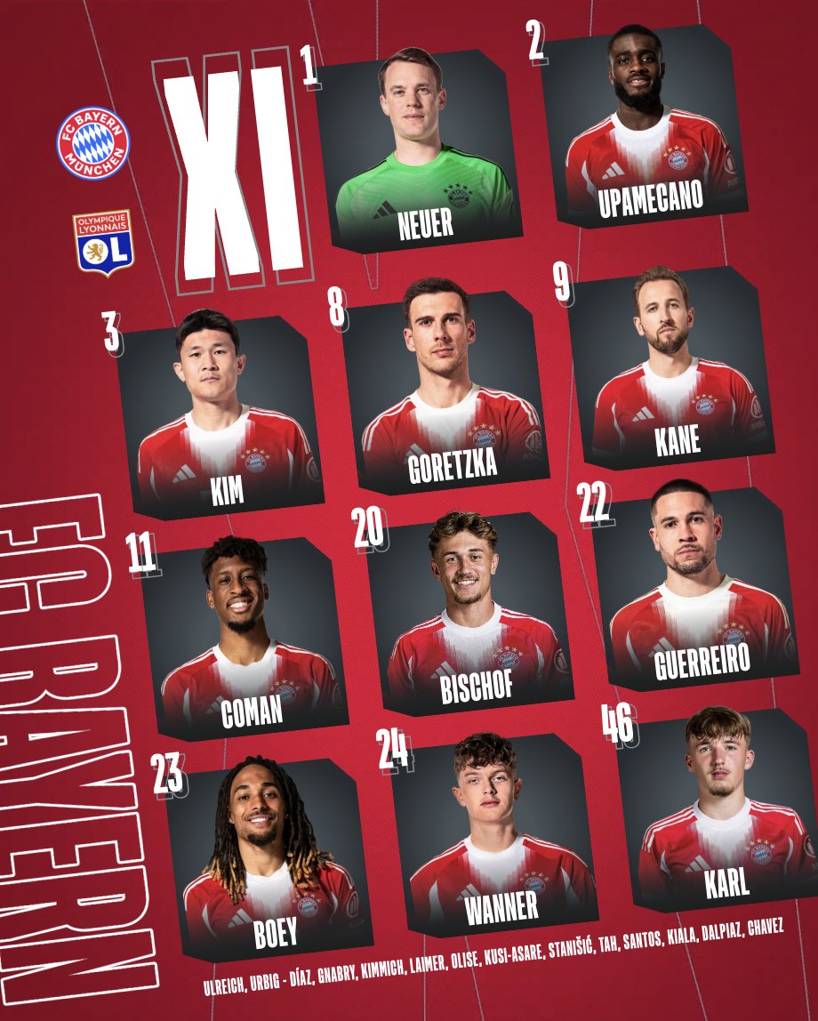 Début de la seconde période entre le Bayern Munich et l’OL. A noter que Vincent Kompany a changé toute son équipe pour démarrer ce deuxième acte. On retrouve notamment Gnabry, Olise ou encore Luis Diaz pour sa grande première sous ses nouvelles couleurs.