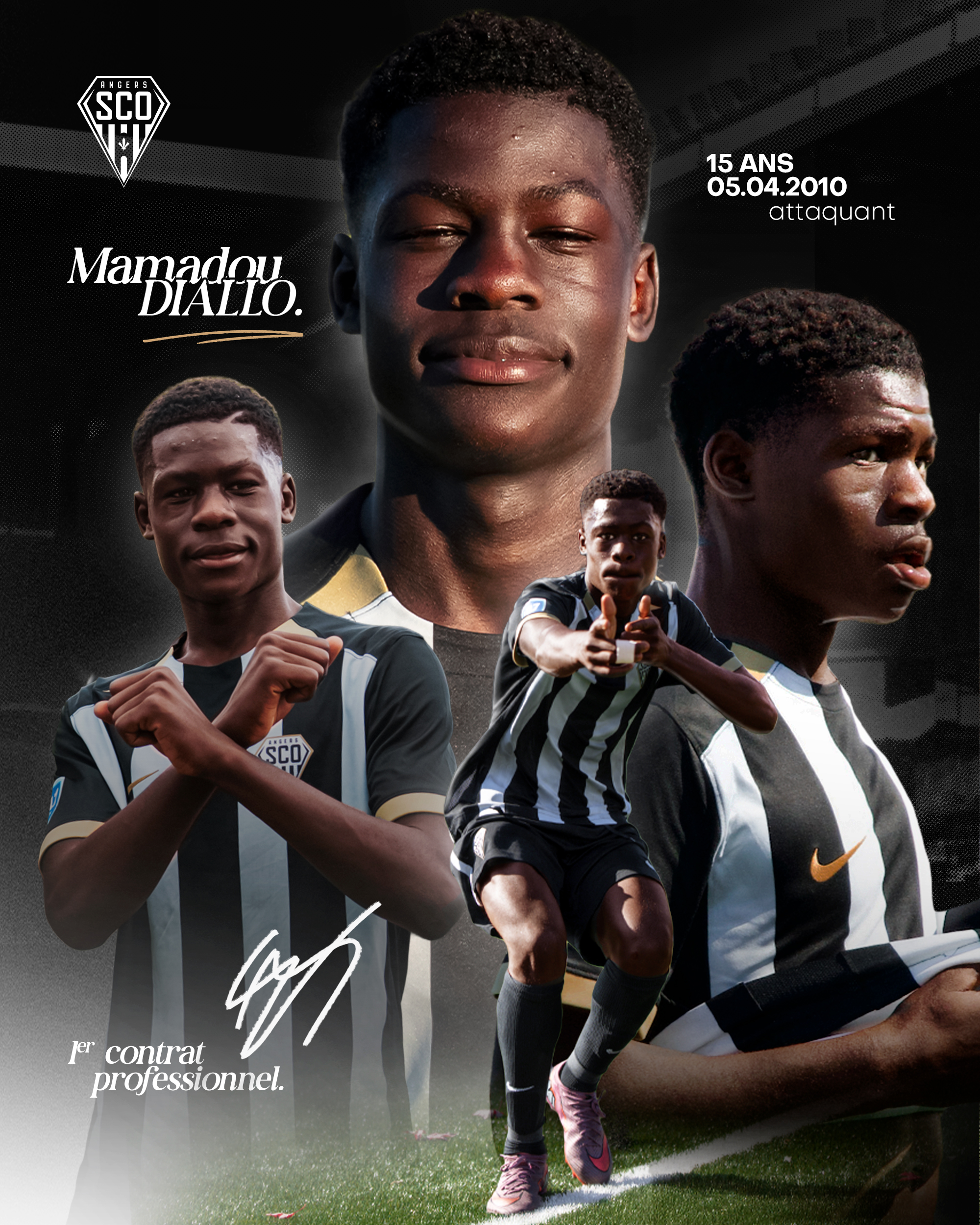 Cette saison, il performe avec les U17 Noir&Blanc, avec lesquels il est surclassé. «Sous les ordres de Yoann Andreu, il est le meilleur buteur de l’équipe ainsi que de sa catégorie nationale, avec onze buts en neuf matchs, précise le SCO. À 15 ans, 6 mois et 19 jours, Mamadou Diallo devient ainsi le plus jeune joueur de l’histoire moderne du Club à signer un contrat professionnel, devant Rayan Aït-Nouri et Mohamed-Ali Cho, qui avaient signé leur contrat à l’âge de 16 ans». Un talent à surveiller.