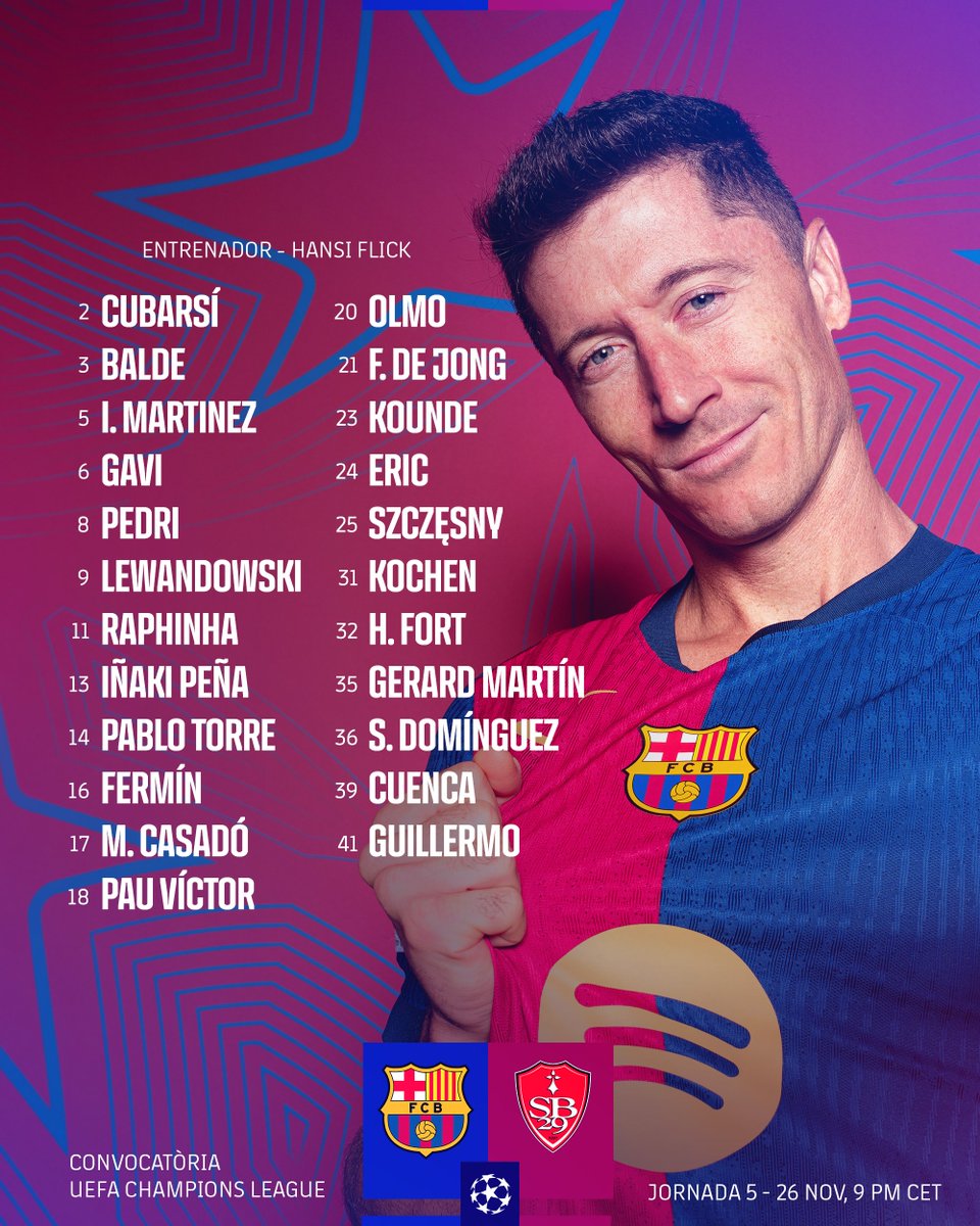 Le groupe du FC Barcelone pour la rencontre de Ligue des champions face au Stade Brestois a été annoncé. Sans surprise, Lamine Yamal est absent en raison d’une blessure à la cheville. L’ailier de 17 ans n’étant toujours pas remis, Hansi Flick préfère ne prendre aucun risque avec lui.