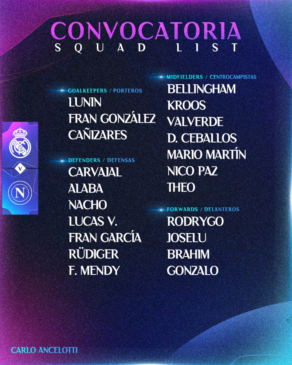 Demain soir, le Real Madrid va affronter Naples lors de la cinquième journée de l’UEFA Champions League. Pour l’occasion, Carlo Ancelotti, qui doit composer avec de nombreuses absences, a décidé de piocher au sein de la Cantera. Et le Mister a décidé de convoquer un certain Theo Zidane. Le troisième fils de Zizou sera dans le groupe pour défier le Napoli demain.