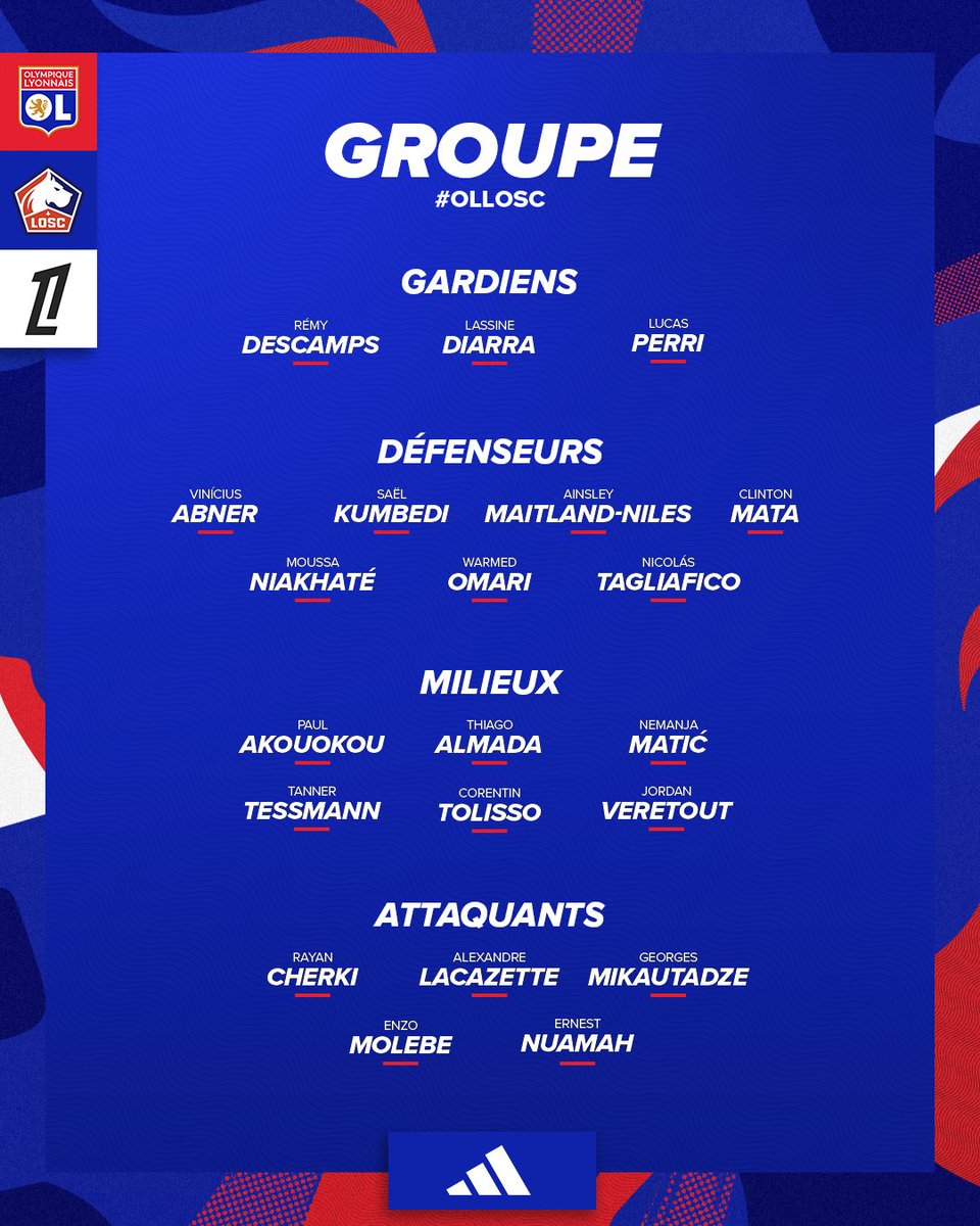 Alors que Malick Fofana est absent encore deux semaines, aucun cadre de l’effectif lyonnais ne manque à l’appel. En effet, Corentin Tolisso, Thiago Almada, Rayan Cherki ou encore Alexandre Lacazette seront présents.