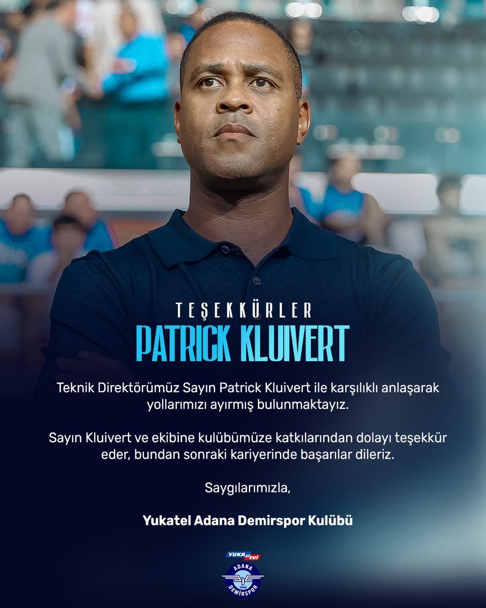 Il y a quelques jours, nous vous contions les débuts remarqués de Patrick Kluivert sur le banc de l’Adana Demirspor. Pour son premier rôle d’entraîneur principal d’une équipe après des expériences mitigées en tant qu’adjoint, directeur sportif et sélectionneur, l’ancien buteur du FC Barcelone avait réussi à réaliser un début de saison formidable qui avait placé les siens au troisième rang en Süper Lig.