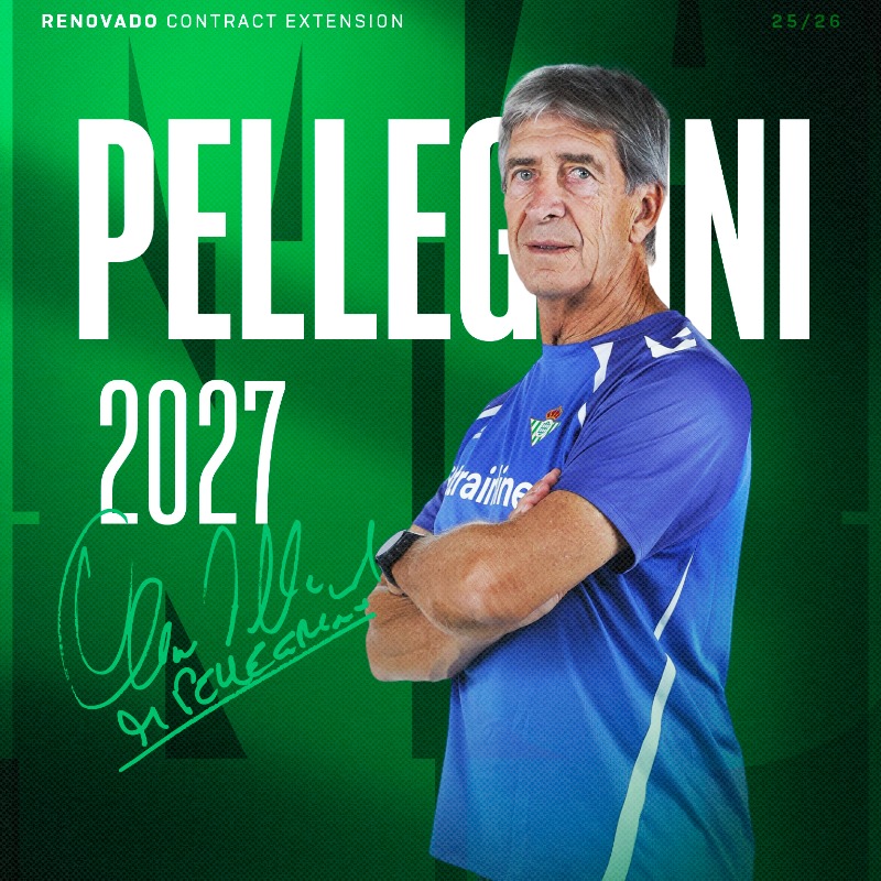 «Le Real Betis Balompié et Manuel Pellegrini ont prolongé leur contrat d’une saison. L’entraîneur chilien dirigera donc l’équipe du Betis jusqu’en juin 2027. Pellegrini a rejoint l’équipe verte et blanche à l’été 2020. Depuis son arrivée, le Real Betis a remporté la Coupe du Roi en 2022 et a participé à cinq compétitions européennes consécutives, atteignant la finale historique de la Ligue Conférence de l’UEFA cette année. Parmi ses exploits, Manuel Pellegrini est devenu l’entraîneur ayant dirigé le plus de matchs de l’équipe en première division et en Europe, en plus de détenir le record du plus grand nombre de victoires à la tête du Real Betis.» L’aventure continue !