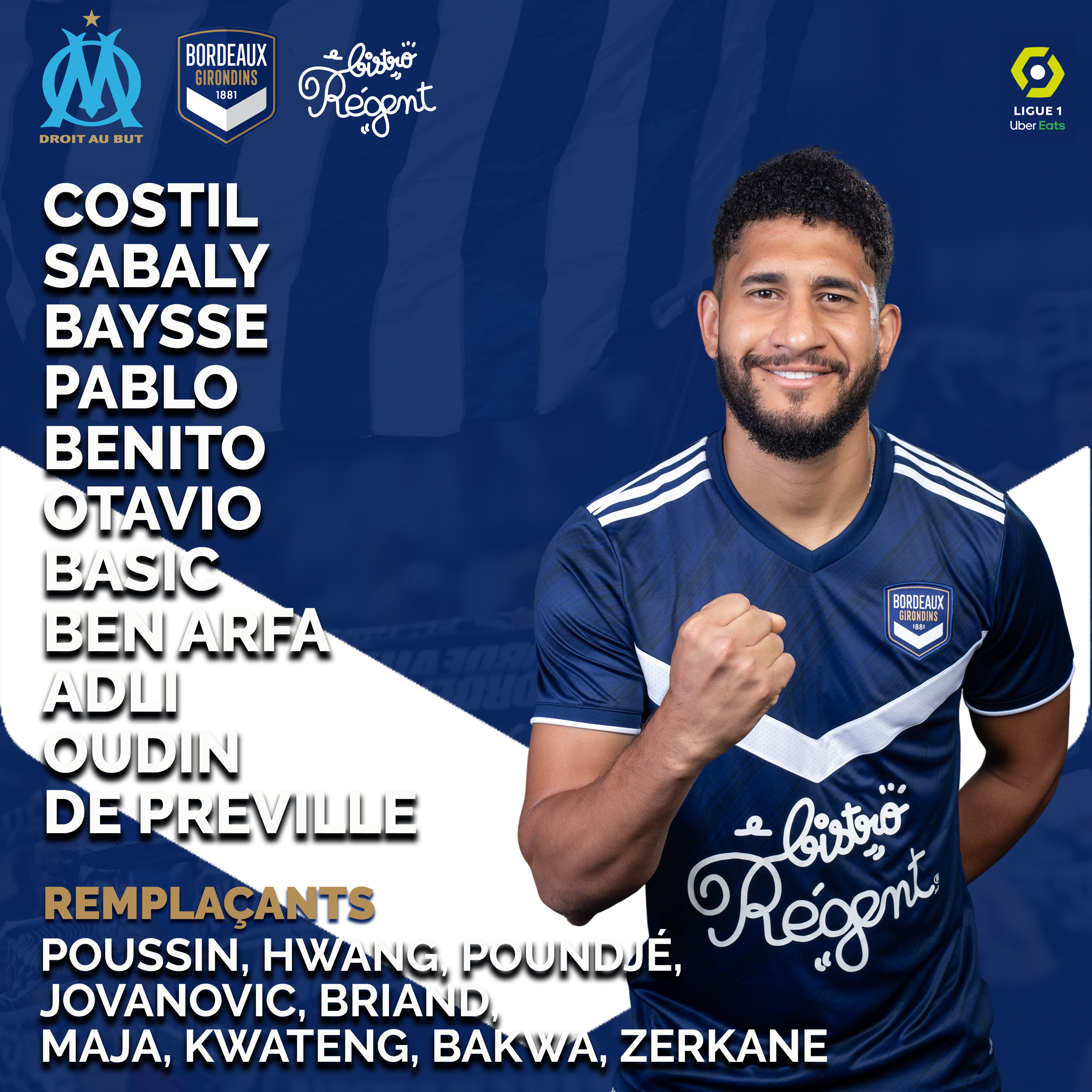 Bordeaux : Costil - Benito, Baysse, Pablo, Sabaly - Basic, Otavio - Oudin , Adli, Ben Arfa - De Préville.