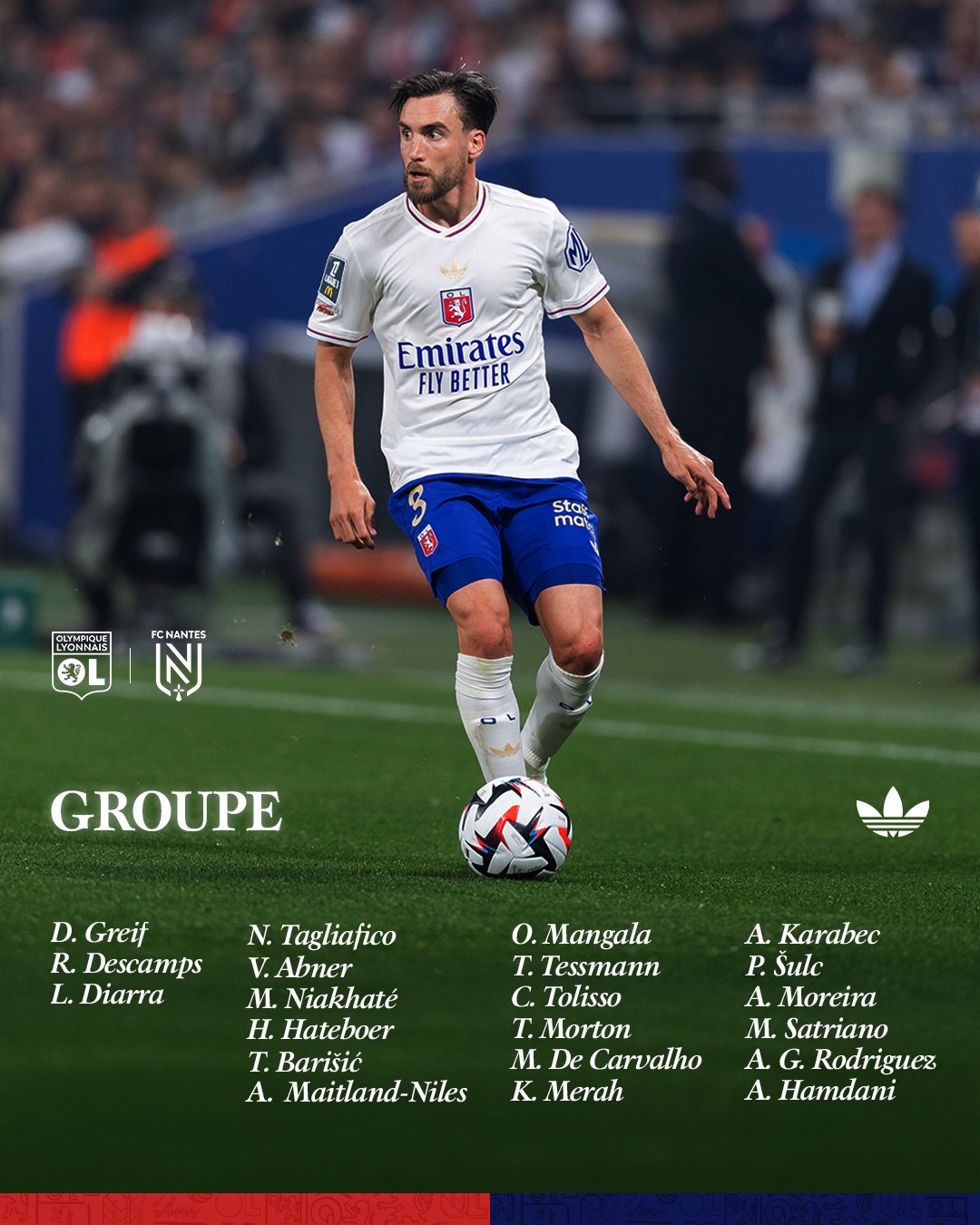 Comme il l’a annoncé en conférence de presse, Orel Mangala, blessé depuis janvier, sera de la partie face aux Canaris ce dimanche. Appelé dans le groupe pour la première fois de saison, le milieu belge fait son grand retour aux côtés de Nicolas Tagliafico, Tyler Morton et Hans Hateboer, de retour de suspension. Le jeune Adil Hamdani (16 ans) est également convoqué.