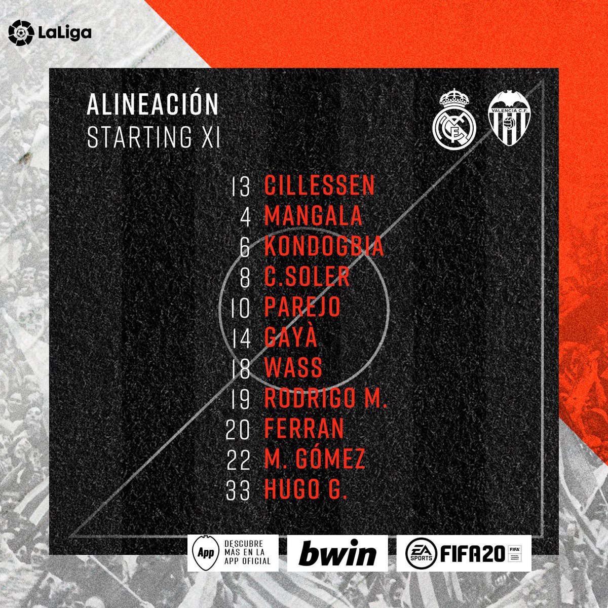 Concernant le club che, Albert Celades change pas mal de choses dans son 4-2-3-1 après le nul contre Levante (1-1). Wass intègre en effet la défense à quatre et Mangala accompagne Guillamon en charnière centrale. Le Français Kondogbia est également titulaire au milieu, tout comme Torres qui intègre le onze de départ.