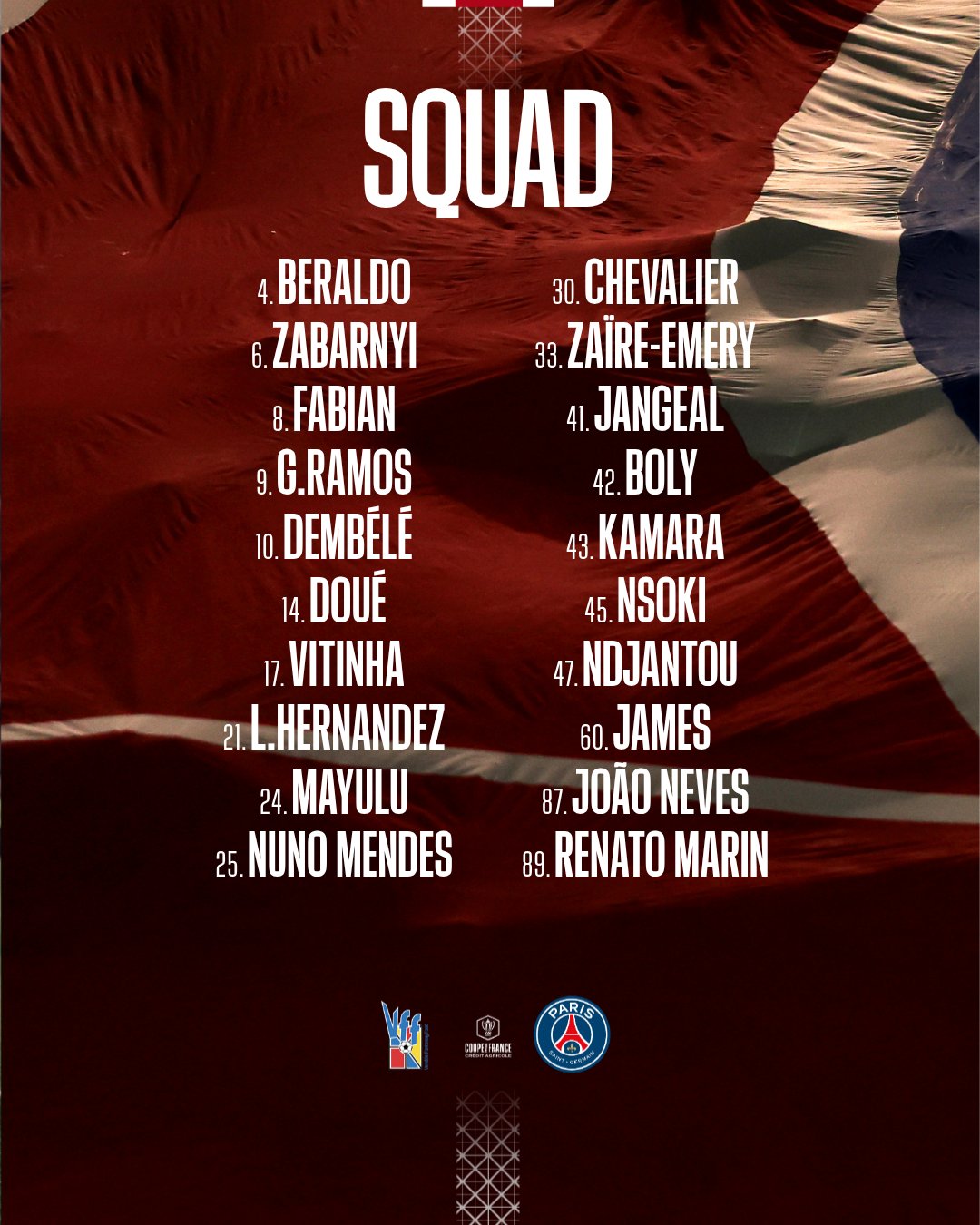 CdF : le groupe officiel du PSG face au Fontenay Foot