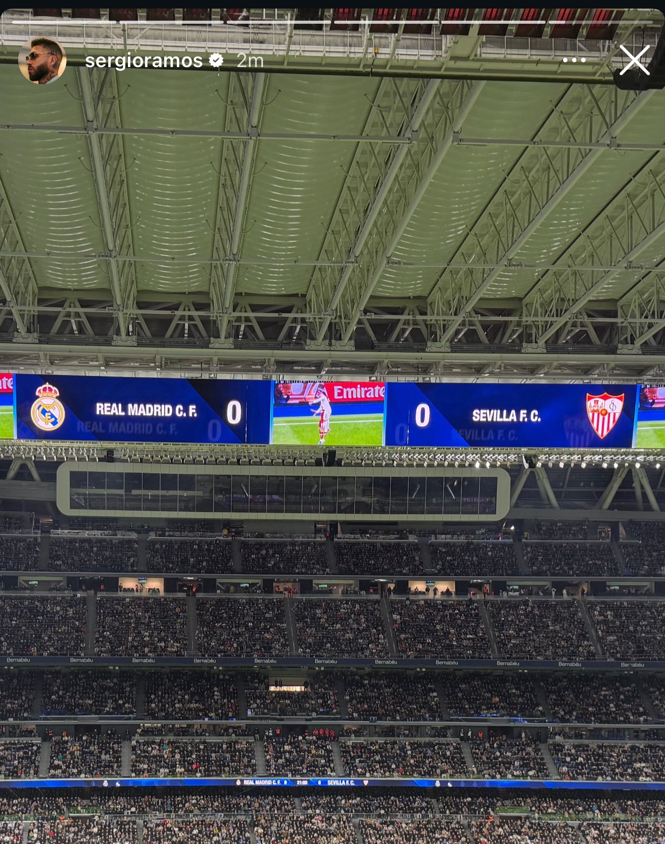 Pour le dernier match de l’année 2025, le Real Madrid a pu compter sur un invité de marque dans les tribunes du Santiago Bernabéu : Sergio Ramos. L’ancien capitaine madrilène a lui-même partagé une photo de sa présence sur Instagram, assistant à la rencontre face à Séville (2-0), son club formateur.