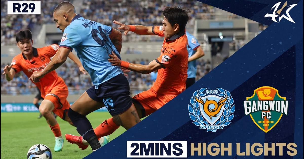 Revivez les buts et les meilleurs moments (highlights) en vidéo du match de K League 1 entre Daegu et Gangwon. Un match de la 29e journée qui a eu lieu le 01 septembre 2023 et s'est terminé sur le score de 0-0. Tous les résumés vidéos de K League 1 sont accessibles via Foot mercato sur nos pages matchs et vidéos.